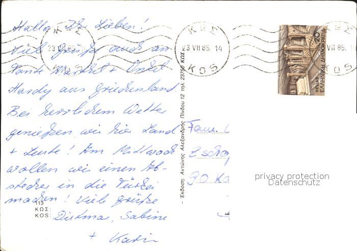 old postcard Kos Cos Teilansicht postalisch gelaufen Erhaltung siehe scans