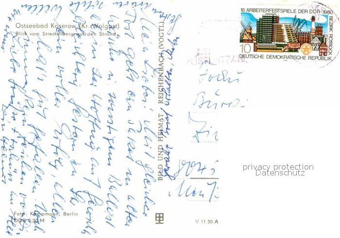 72632385 alte Postkarte Koserow Ostseebad Usedom Blick vom Streckelberg auf den Strand postalisch gelaufen Erhaltung siehe scans [FriedD77] KatCode: 11110013059044