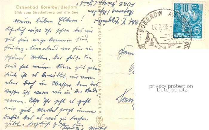 72699669 alte Postkarte Koserow Ostseebad Usedom Blick vom Streckelberg auf die See postalisch gelaufen Erhaltung siehe scans [LiesaD40] KatCode: 11110013059044
