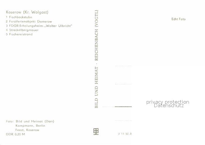 72634234 Koserow Ostseebad Usedom Fischbackstube Forstferienobjekt Bamerow Erholungsheim Walter Ulbricht postalisch nicht gelaufen Erhaltung siehe scans [AndreD76] KatCode: 11110013059044