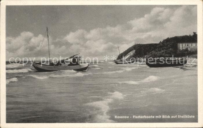 71982273 alte Postkarte Koserow Ostseebad Usedom Fischerboote mit Blick auf Steilkueste postalisch gelaufen Erhaltung siehe scans KatCode: 11110013059044