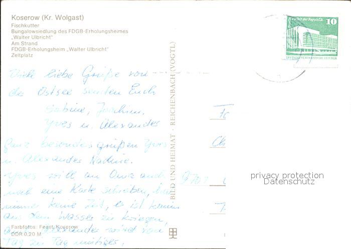 72383123 alte Postkarte Koserow Ostseebad Usedom Fischkutter Bungalows Strand postalisch gelaufen Erhaltung siehe scans KatCode: 11110013059044