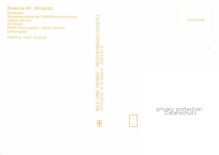 72845092 Koserow Ostseebad Usedom Fischkutter Bungalowsiedlung FDGB Erholungsheim Strand Campingplatz postalisch nicht gelaufen Erhaltung siehe scans [FriedD77] KatCode: 11110013059044