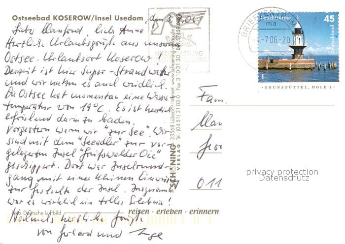 73165213 alte Postkarte Koserow Ostseebad Usedom Fliegeraufnahme postalisch gelaufen Erhaltung siehe scans [KathaD81] KatCode: 11110013059044