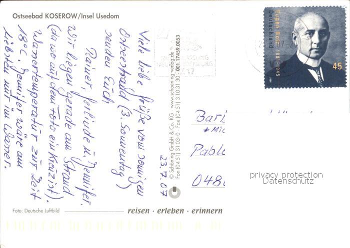 72481742 alte Postkarte Koserow Ostseebad Usedom Fliegeraufnahme postalisch gelaufen Erhaltung siehe scans KatCode: 11110013059044