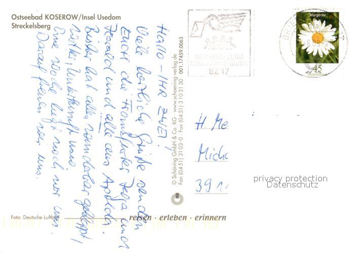 73322003 alte Postkarte Koserow Ostseebad Usedom Fliegeraufnahme Streckelsberg postalisch gelaufen Erhaltung siehe scans [KathaD81] KatCode: 11110013059044