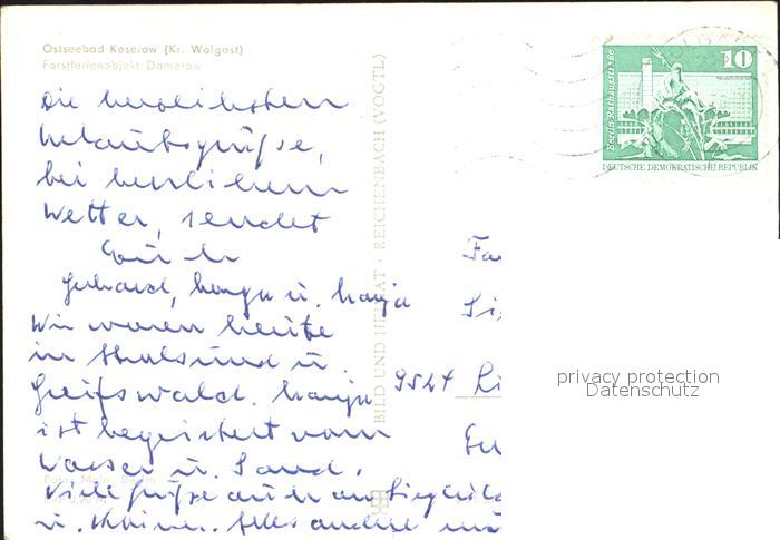 72075932 alte Postkarte Koserow Ostseebad Usedom Forstferienobjekt Damerow postalisch gelaufen Erhaltung siehe scans KatCode: 11110013059044