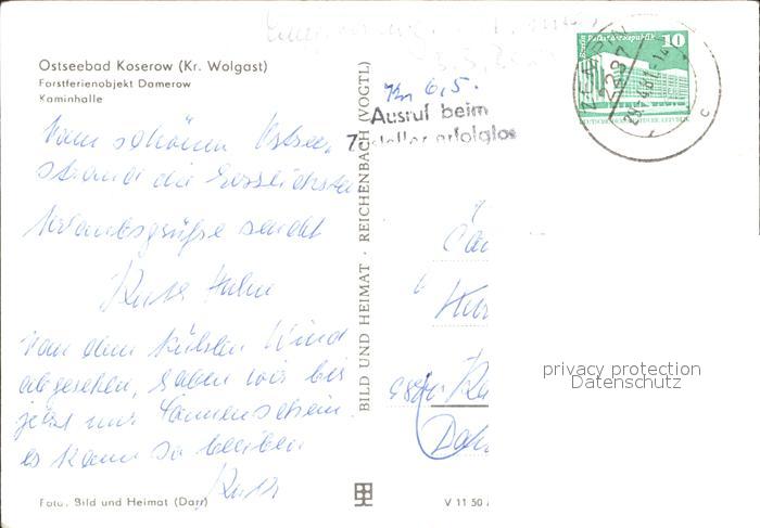71942006 alte Postkarte Koserow Ostseebad Usedom Forstferienobjekt Damerow Kaminhalle postalisch gelaufen Erhaltung siehe scans KatCode: 11110013059044