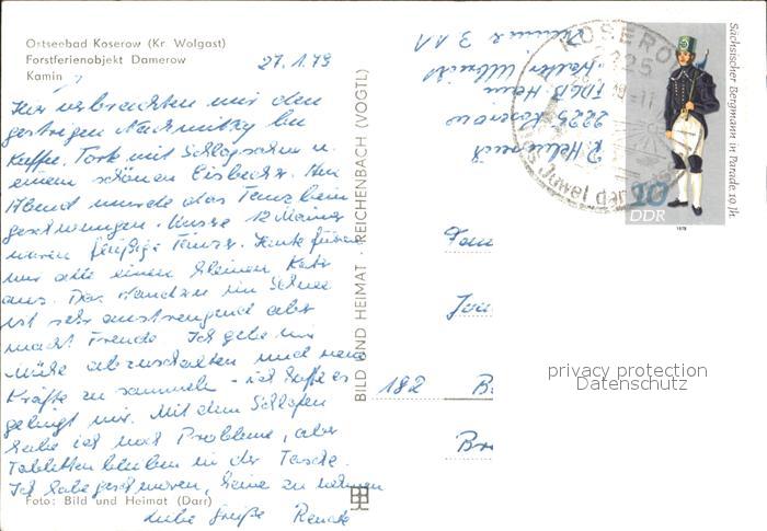 72172085 alte Postkarte Koserow Ostseebad Usedom Forstferienobjekt Damerow Kaminzimmer postalisch gelaufen Erhaltung siehe scans KatCode: 11110013059044