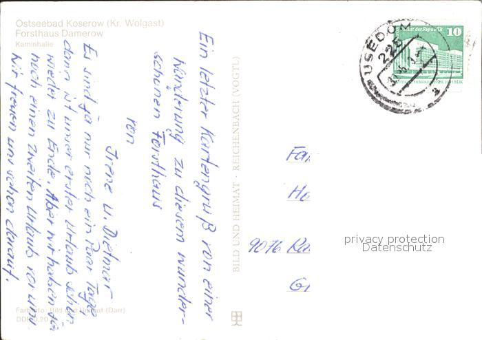 71946987 alte Postkarte Koserow Ostseebad Usedom Forsthaus Damero Restaurant postalisch gelaufen Erhaltung siehe scans KatCode: 11110013059044