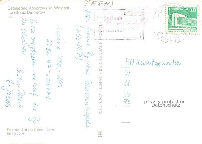 74043279 alte Postkarte KOSEROW Ostseebad Usedom Forsthaus Damerow postalisch gelaufen Erhaltung siehe scans [WerneD78] KatCode: 11110013059044