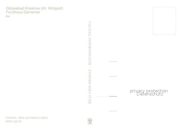 73570150 Koserow Ostseebad Usedom Forsthaus Damerow Bar postalisch nicht gelaufen Erhaltung siehe scans [FriedD77] KatCode: 11110013059044