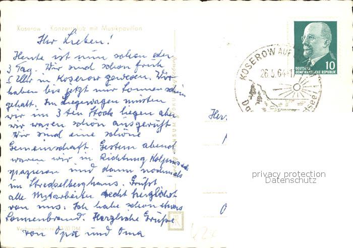 72077040 alte Postkarte Koserow Ostseebad Usedom Konzertplatz Musikpavillon postalisch gelaufen Erhaltung siehe scans KatCode: 11110013059044