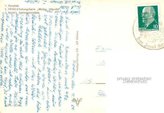 73029115 alte Postkarte Koserow Ostseebad Usedom Kurplat FDGB Erholungsheim Walter Ulbricht Kelch Speisegaststaette postalisch gelaufen Erhaltung siehe scans [KathaD81] KatCode: 11110013059044
