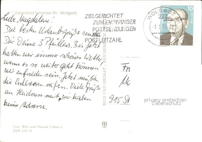 72328797 alte Postkarte Koserow Ostseebad Usedom Neptuns Ankunft Zeltplatz Strand Fischerhuetten Streckelberg Kueste postalisch gelaufen Erhaltung siehe scans KatCode: 11110013059044
