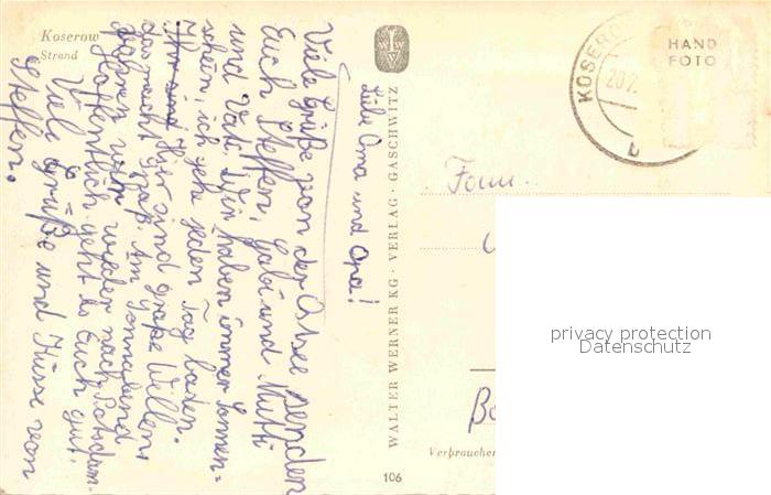 72640303 alte Postkarte Koserow Ostseebad Usedom Strand postalisch gelaufen Erhaltung siehe scans [WerneD78] KatCode: 11110013059044