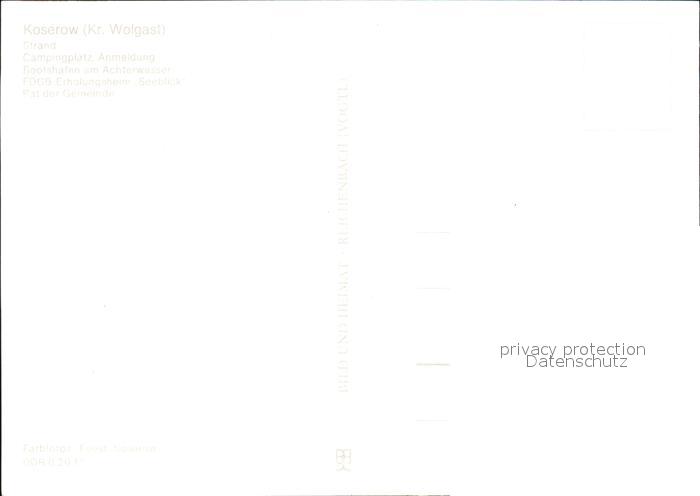 72550714 Koserow Ostseebad Usedom Strand Campingplatz Bootshafen Achterwasser Rat der Gemeinde postalisch nicht gelaufen Erhaltung siehe scans [KathaD79] KatCode: 11110013059044