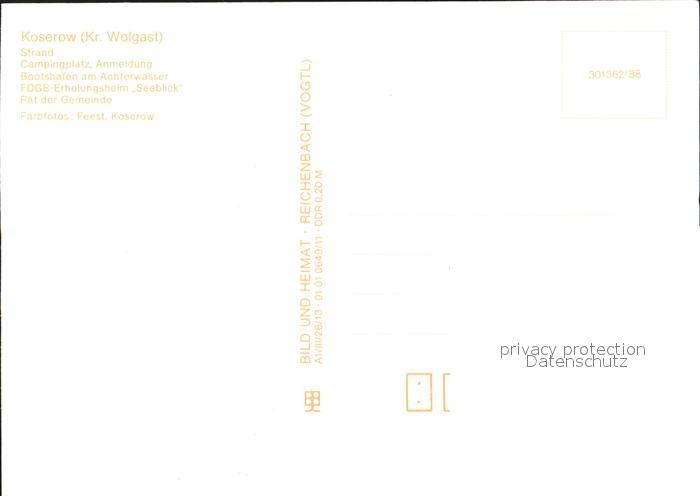72324124 Koserow Ostseebad Usedom Strand Campingplatz Bootshafen am Achterwasser FDGB Erholungsheim Seeblick Rat der Gemeinde postalisch nicht gelaufen Erhaltung siehe scans KatCode: 11110013059044