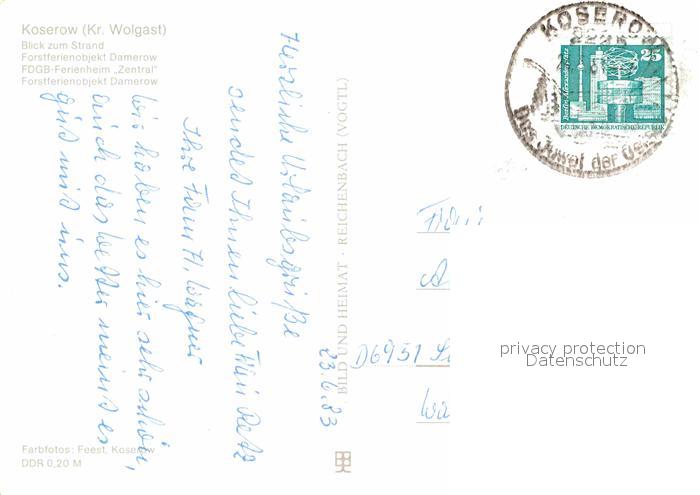 72903836 alte Postkarte Koserow Ostseebad Usedom Strand Ferienobjekt Damerow FDGB Erholungsheim Zentral postalisch gelaufen Erhaltung siehe scans [FriedD77] KatCode: 11110013059044