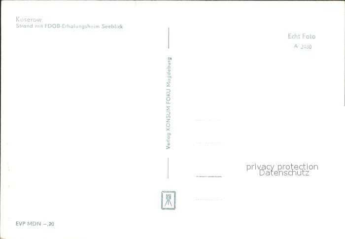 72176493 Koserow Ostseebad Usedom Strand mit FDGB Erholungsheim Seeblick postalisch nicht gelaufen Erhaltung siehe scans KatCode: 11110013059044