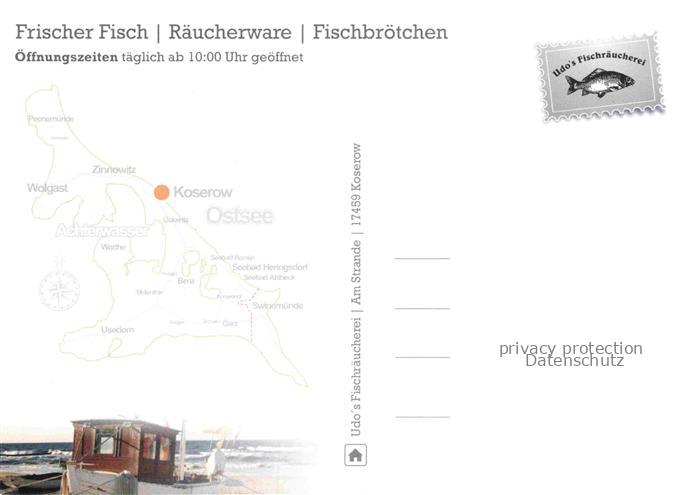 74043919 KOSEROW Ostseebad Usedom Udos Fischraeucherei Fischerboot Restaurant postalisch nicht gelaufen Erhaltung siehe scans [WerneD78] KatCode: 11110013059044