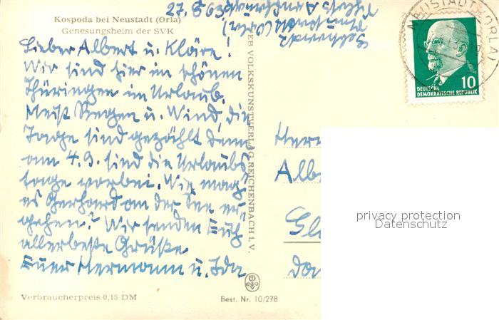 73044668 alte Postkarte Kospoda Genesungsheim der SVK postalisch gelaufen Erhaltung siehe scans [WerneD78] KatCode: 11110016075051