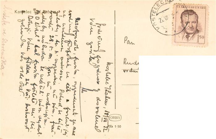 73959480 old postcard Kostelec nad Labem Elbekosteletz CZ Ortszentrum Hauptstrasse Kirche postalisch gelaufen Erhaltung siehe scans [FriedD77] KatCode: 11520