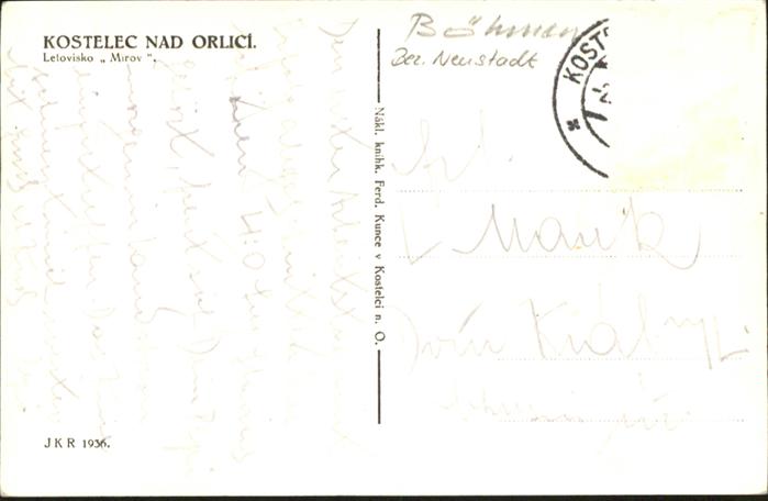 old postcard Kostelec Nad Orlici postalisch gelaufen