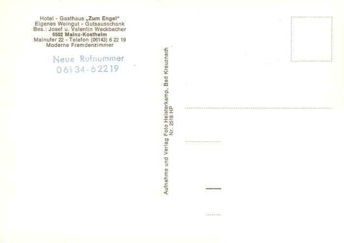 73883350 Kostheim Mainz Gasthaus Zum Engel Hotel Gastraeume postalisch nicht gelaufen Erhaltung siehe scans [FriedD77] KatCode: 11110006414000