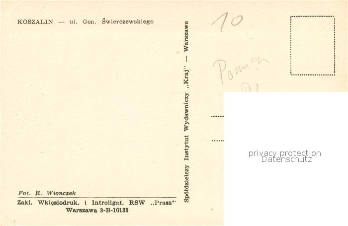 33708329 Koszalin Koeslin Pommern Ulica Gen Swierczewskiego postalisch nicht gelaufen Erhaltung siehe scans [WerneD78] KatCode: 11410