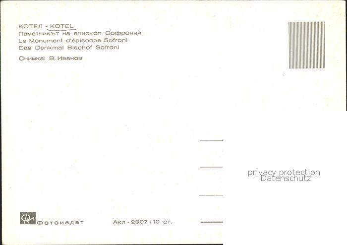 Kotel Denkmal Bischof Sofroni postalisch nicht gelaufen Erhaltung siehe scans