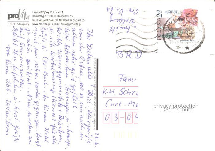 old postcard Kotobrzeg Hotel Pro Vita postalisch gelaufen Erhaltung siehe scans