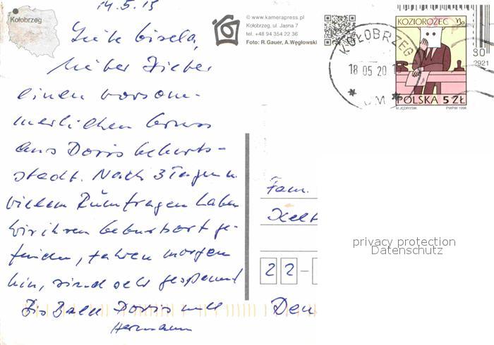 old postcard Kotobrzeg Kirchen Leuchtturm Strand Schwaene postalisch gelaufen Erhaltung siehe scans [LiesaD40]