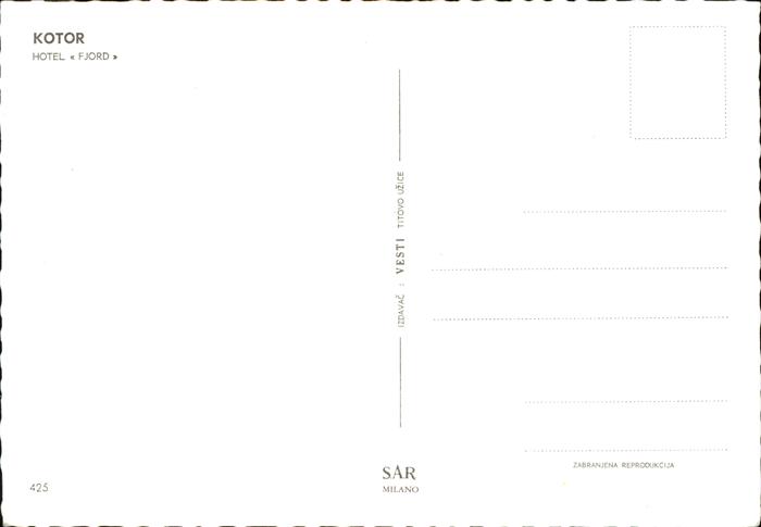 Kotor Montenegro Hotel Fjord postalisch nicht gelaufen Erhaltung siehe scans