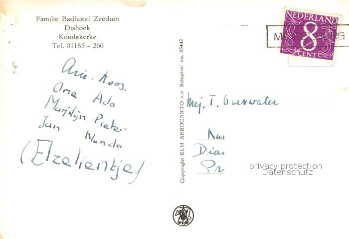 13088221 Koudekerke Fliegeraufnahme Badhotel Zeeduin Dishoek postalisch gelaufen Erhaltung siehe scans [LiesaD40] old postcard Lies Katcode 11370