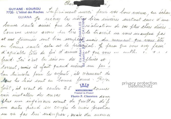 74029577 Kourou Hôtel des Roches Plage Piscine postalisch nicht gelaufen Erhaltung siehe scans [FriedD77] KatCode: 17080