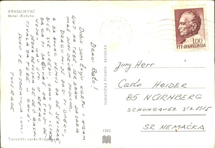 old postcard Kragujevac Sumadija Motel Kosuta postalisch gelaufen Erhaltung siehe scans