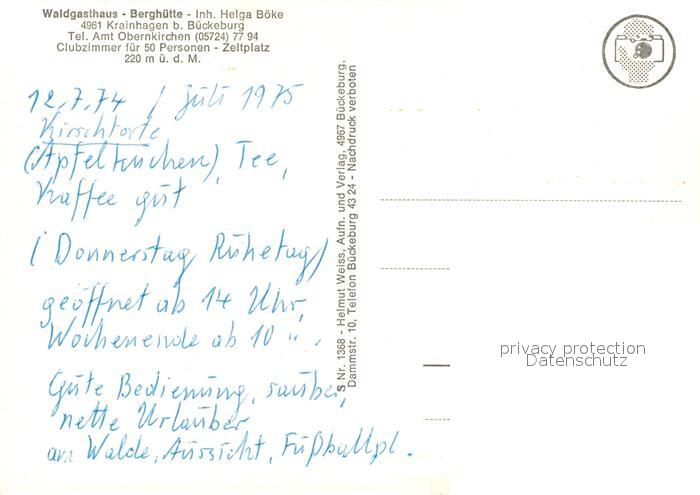 73542329 Krainhagen Waldgasthaus Berghuette postalisch nicht gelaufen Erhaltung siehe scans [KathaD81] KatCode: 11110003257028