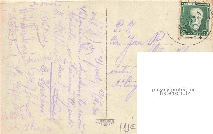 74034116 old postcard Kraje Chodu Domazlic Domazlice Taus Plzen CZ Ortspartie Denkmal Kirche postalisch gelaufen Erhaltung siehe scans [WerneD78] KatCode: 11520