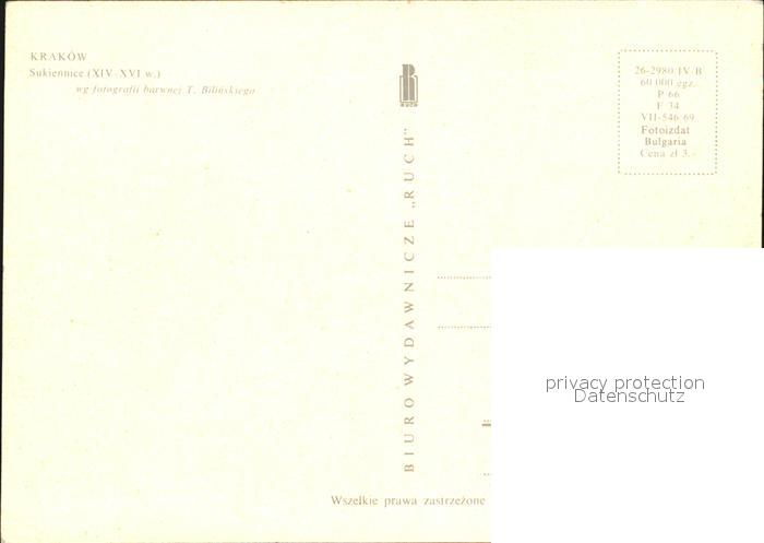 Krakau Krakow Hauptmarkt Tuchhallen postalisch nicht gelaufen Erhaltung siehe scans [KathaD79]