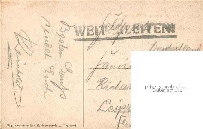 old postcard Krakau Krakow Mickiewicz Denkmal postalisch gelaufen Feldpost Erhaltung siehe scans [FriedD77]