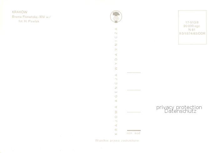 Krakow Krakau Brama Florianska XIV Jhdt. Floriantor postalisch nicht gelaufen Erhaltung siehe scans [FriedD77]