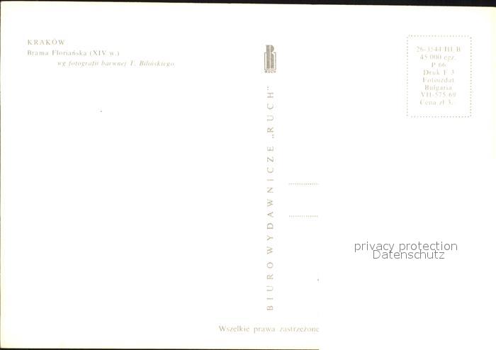 Krakow Krakau Brama Florianska XIV w. Tor postalisch nicht gelaufen Erhaltung siehe scans