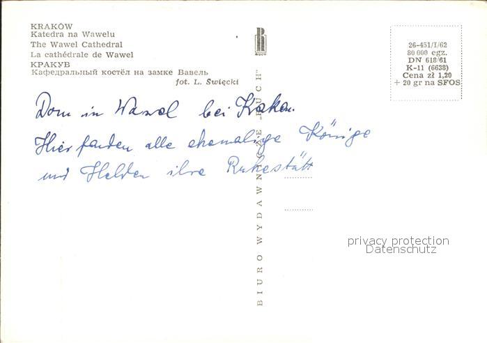 Krakow Krakau Katedra na Wawelu postalisch nicht gelaufen Erhaltung siehe scans