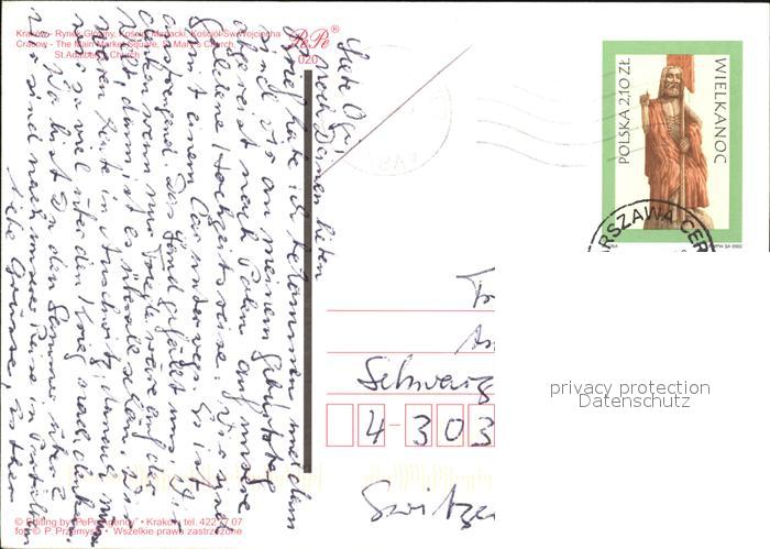 old postcard Krakow Krakau Rynek Glowny Kosoidt Mariacki Kosciol Sw. Wojciecha Marktplatz Kirche postalisch gelaufen Erhaltung siehe scans
