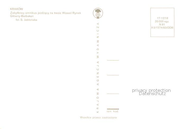 Krakow Krakau Zabytkowy omnibus jezdzacy na trasie Wawel Rynek Glowny Barbakan Historischer Pferdebus postalisch nicht gelaufen Erhaltung siehe scans [FriedD77]