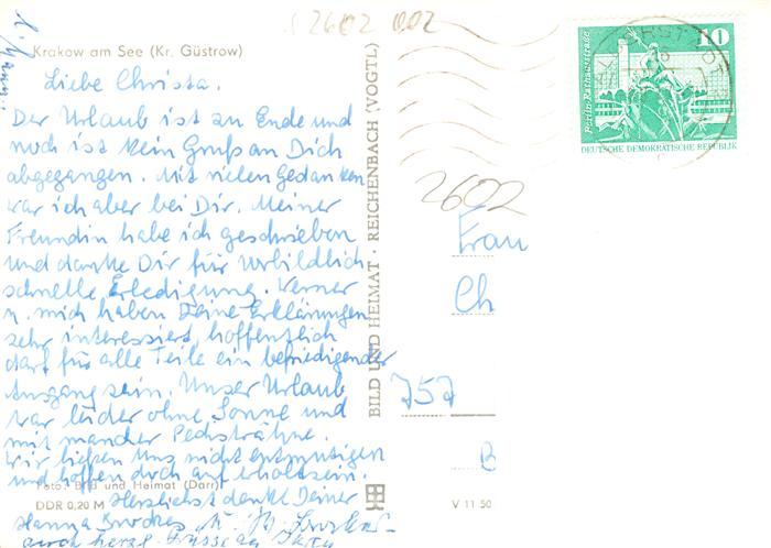 73907762 alte Postkarte Krakow See Faehre Hotel Freibad Terrasse postalisch gelaufen Erhaltung siehe scans [FriedD77] KatCode: 11110013053043