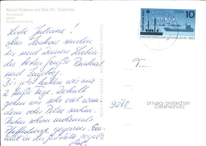 72424044 alte Postkarte Krakow See Marktplatz Bungalowsiedlung Promenade postalisch gelaufen Erhaltung siehe scans KatCode: 11110013053043
