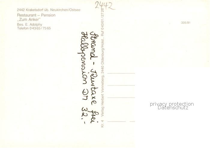 73864486 Kraksdorf Ostsee Neukirchen Restaurant Zum Anker Gaststube Strand postalisch nicht gelaufen Erhaltung siehe scans [WerneD78] KatCode: 11110001055031