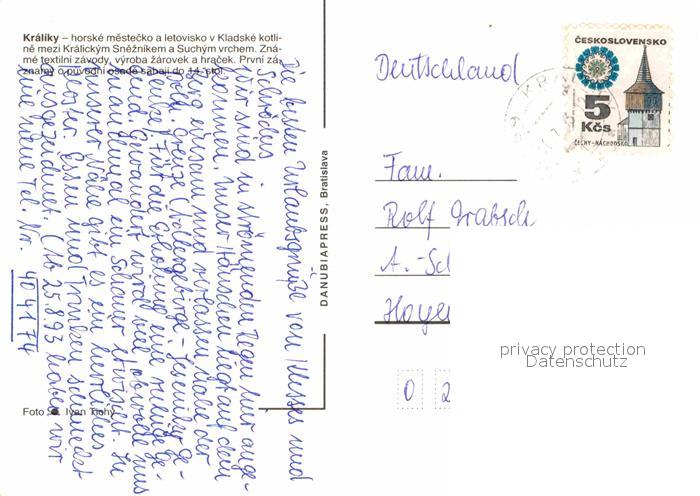 old postcard Kralicky Sneznik Ortspartien postalisch gelaufen Erhaltung siehe scans [LiesaD40]
